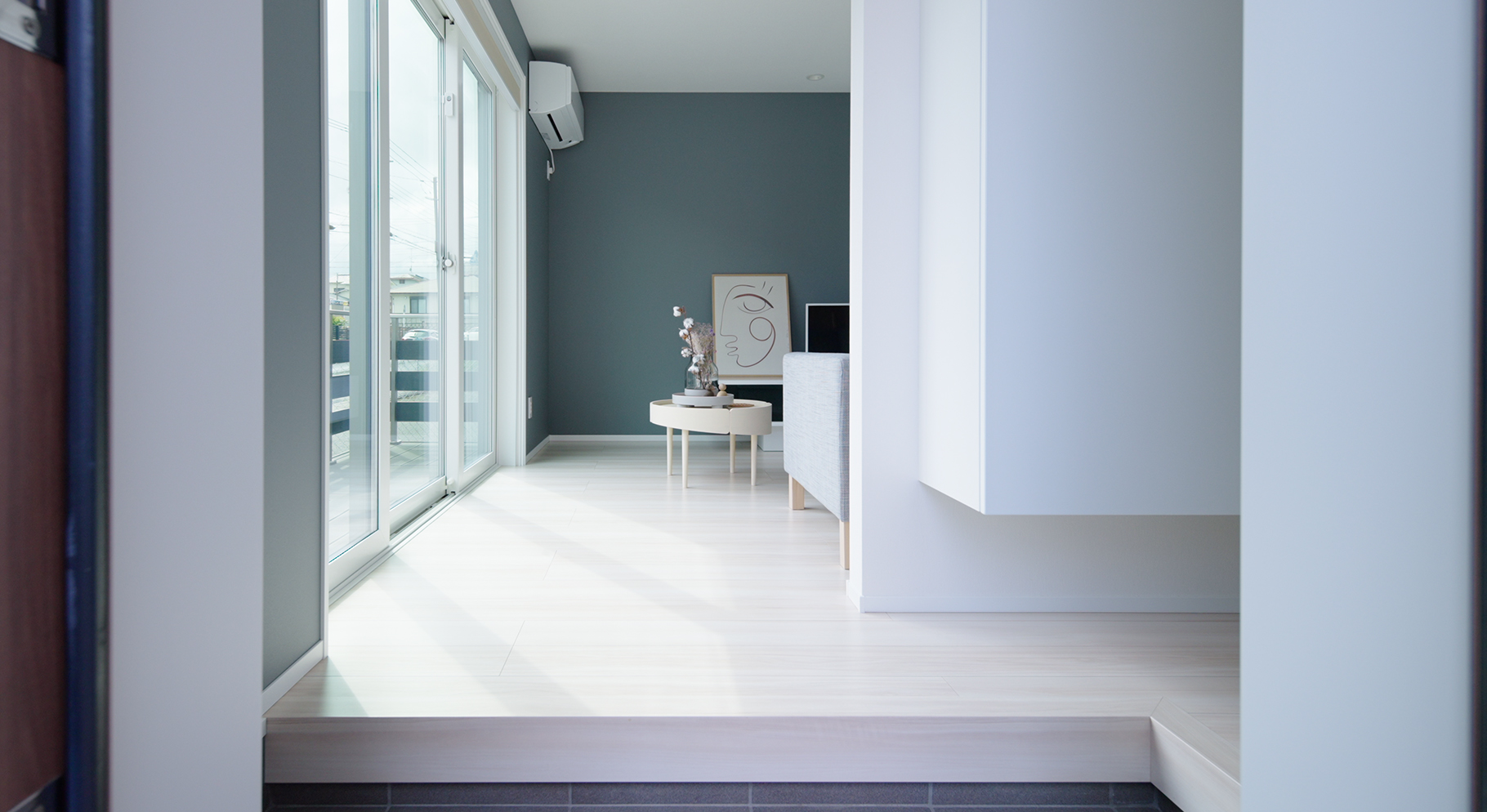 うちは知人が遊びに来ることが多いので、土間の玄関にしたかったんです。そうすればリビングが広くできて、ある程度大きな家具を置いて、みんなで集まれる楽しい家がつくれるなと。