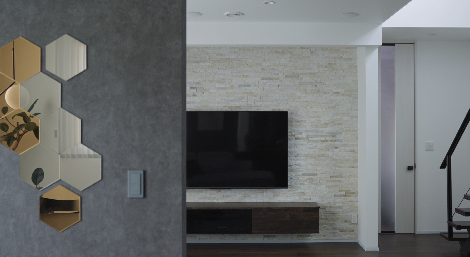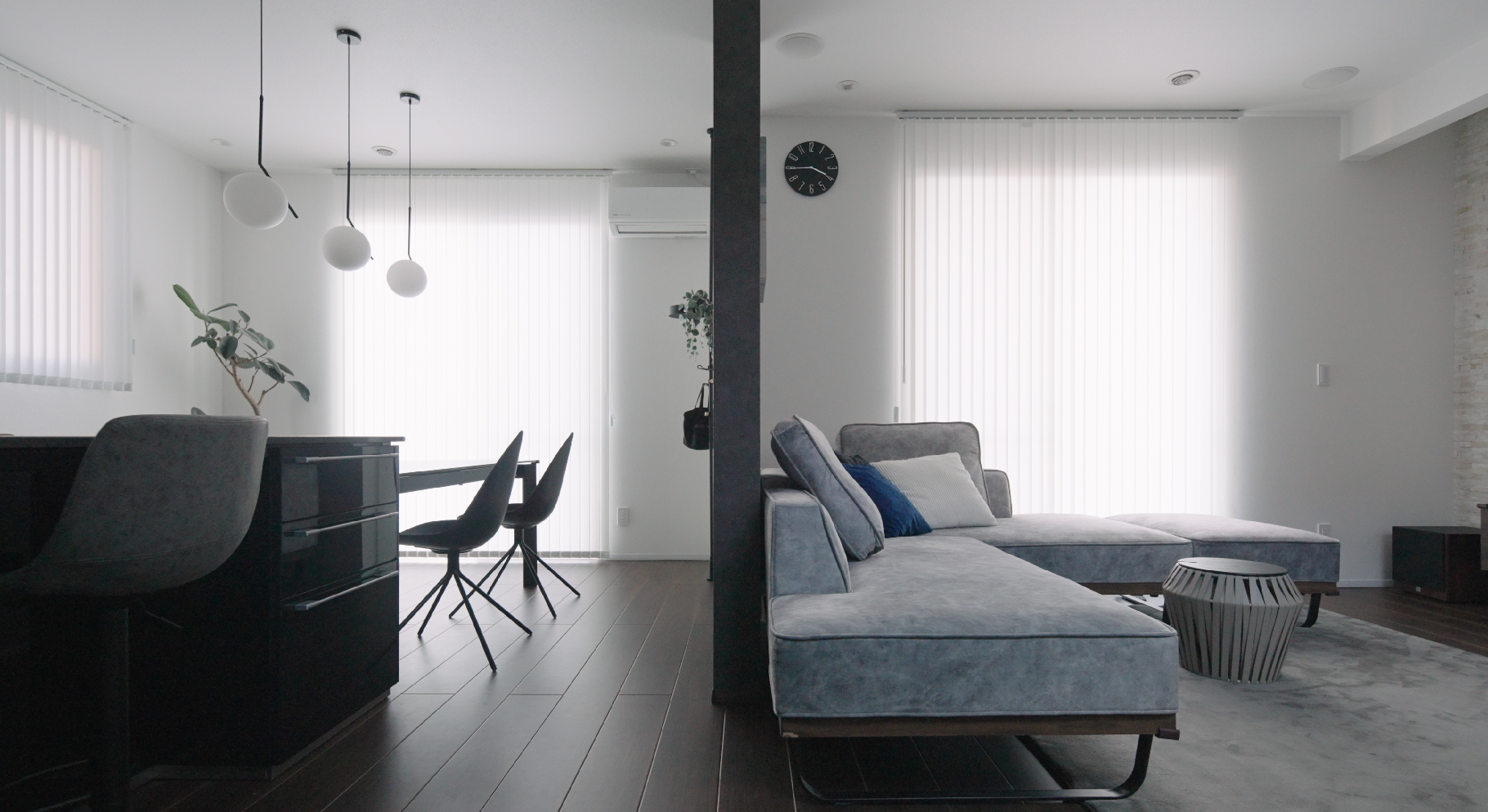 家のコンセプトは「シンプルでちょっとホテルライクな、落ち着ける空間」。家具の色をグレーとブラック系でまとめて、壁紙と建具は白にしました。それから天井を高くして、ホテルのエントランスのようなイメージでハイドアを設置して。ハイドアは高級感があってすごく気に入っています。
