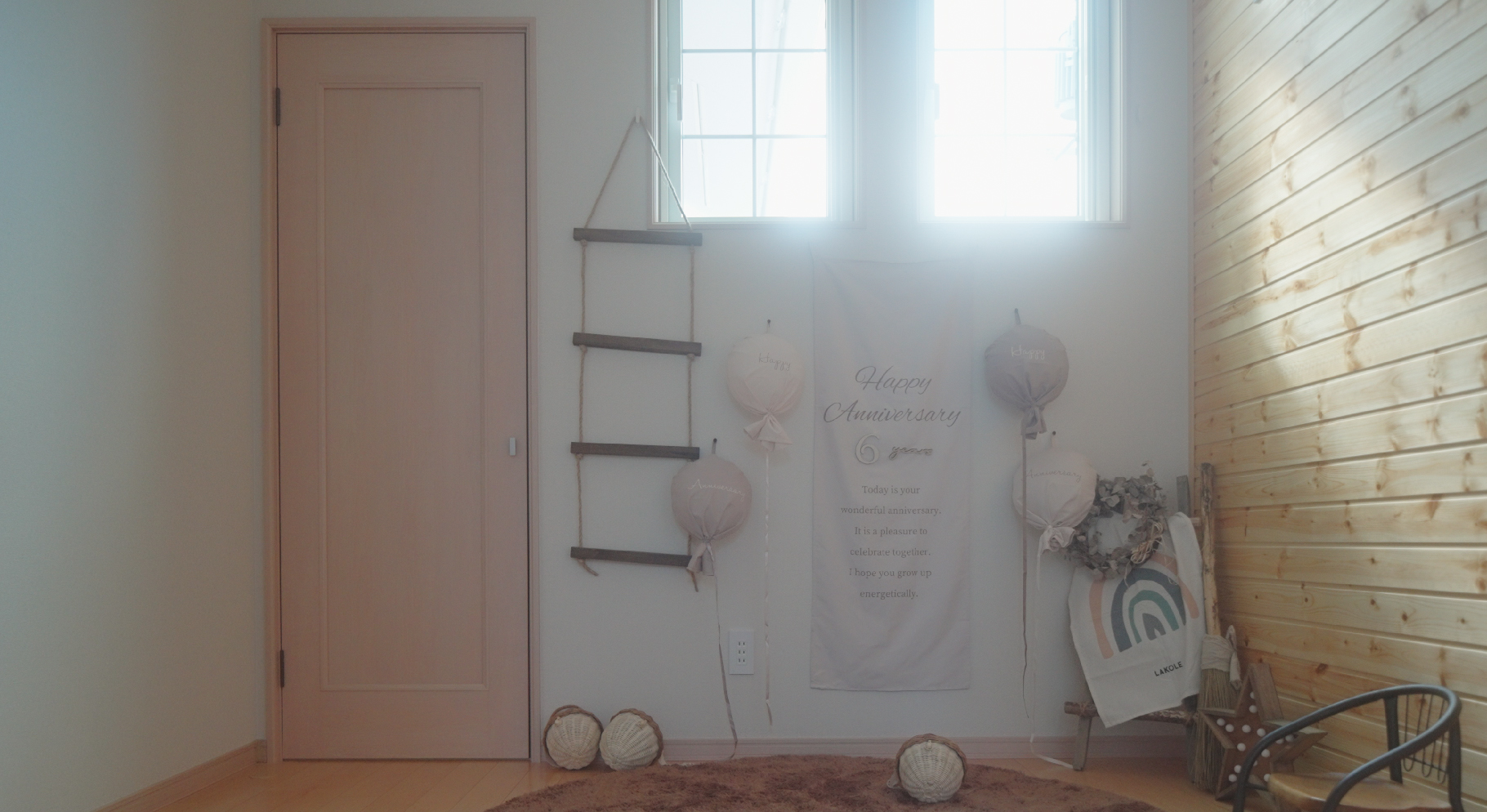 奥様 階段を上がってすぐの部屋は、撮影部屋としても使っています。誕生日や、クリスマスやハロウィンといったイベント事がある度に衣装に着替えて記念撮影をしています。飾り付けは基本は私がやることが多いんですが、衣装や服を選ぶのは子どもたちが自分で選んでいます。