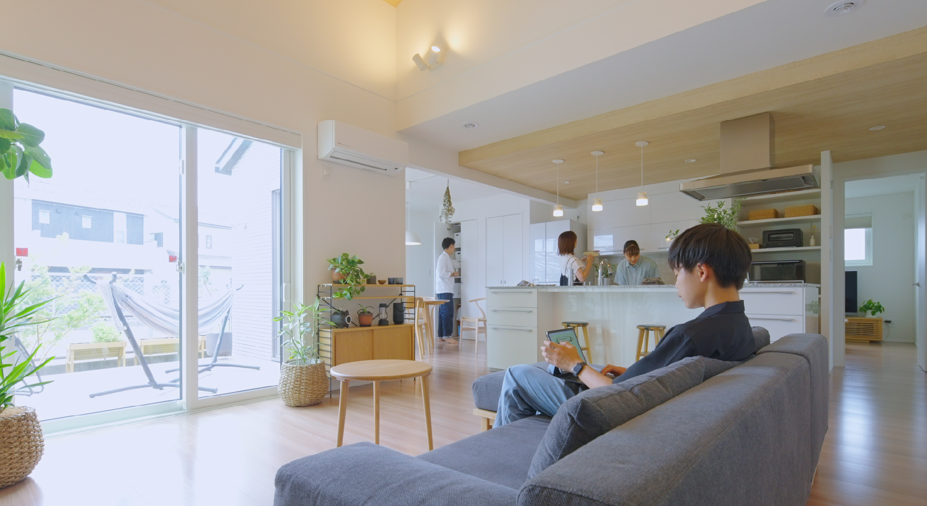 ご主人様 ワンフロアになって家族の気配を感じながら暮らせるようになりました。子どもたちがどんな風に過ごすかなって思っていたんですが、あまり自分の部屋にこもることもなく、LDKのどこかでそれぞれ好きなことをしながらのんびりするというのが定着しています。平屋に引っ越してきて家族のコミュニケーションが増えたというか、つながりが密になったような感じがします。