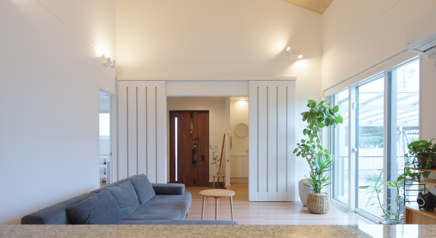 外とつながるように設計されたL字型のLDK
