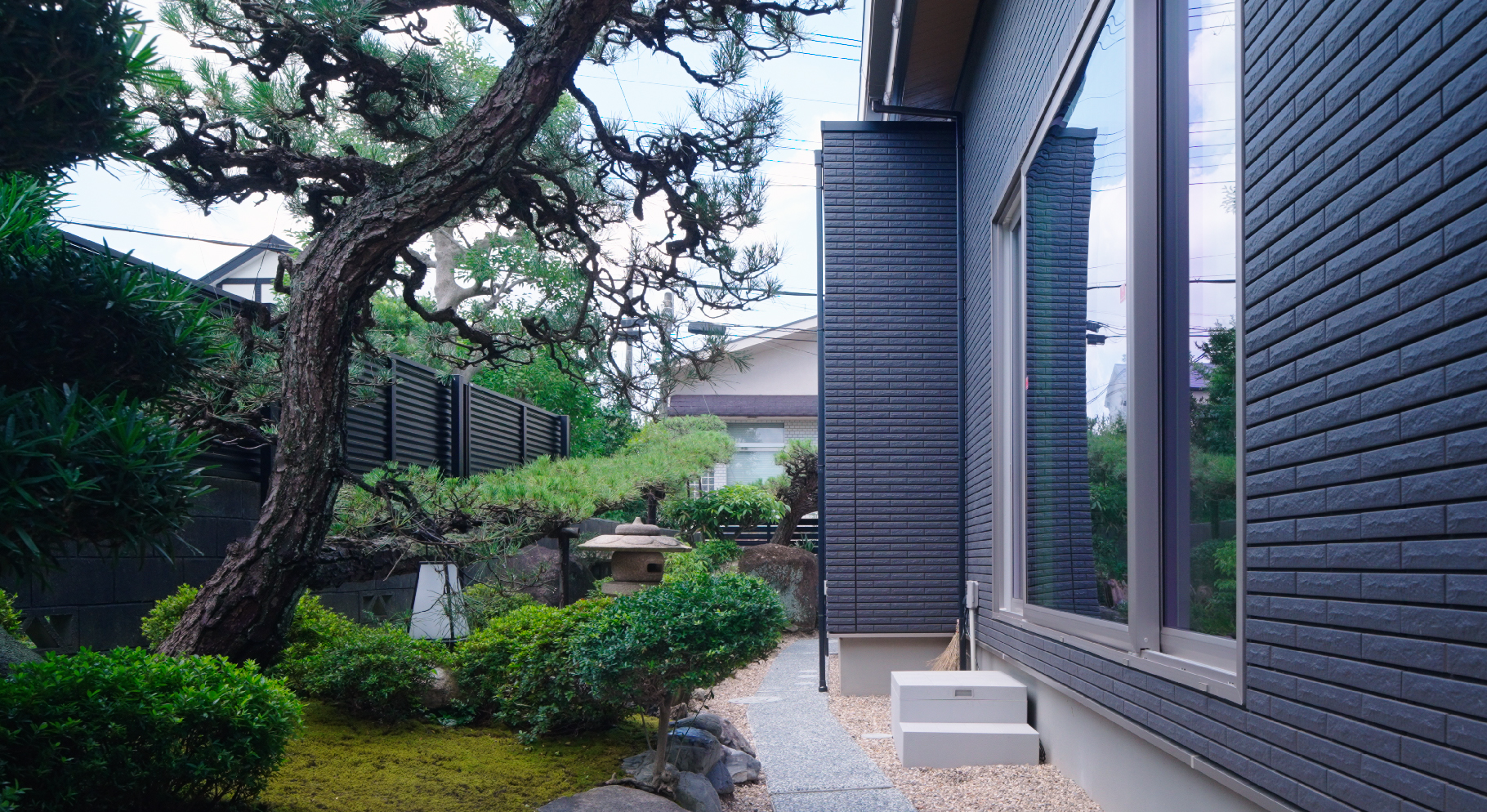 この土地は私の実家があったのですが、老朽化に伴い、建て替えを検討していました。実家は私の祖父が80年ほど前に建てた家で、そのときに植えた松が今でも庭に残っています。
