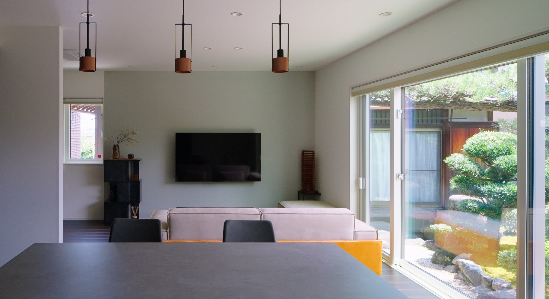 祖父の代から受け継いできた庭を残して、母屋を建て替え。
