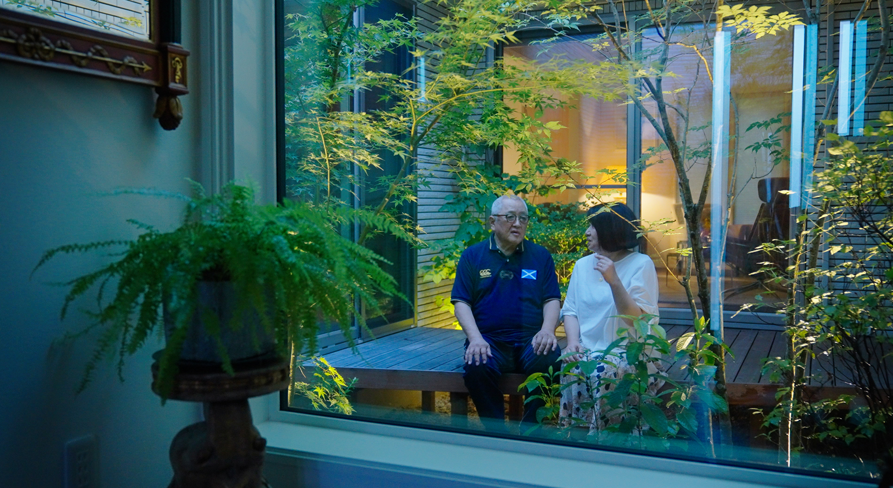 奥様 私も主人も山登りがすごく好きで、自然の緑を家の中に取り込みたい、という風に思って中庭をつくることにしました。家の中心に中庭を配置して、どの部屋からも緑が見えるような間取りにしました。特に玄関を開けたときに植物の緑が目に飛び込んでくる感じが気に入っています。