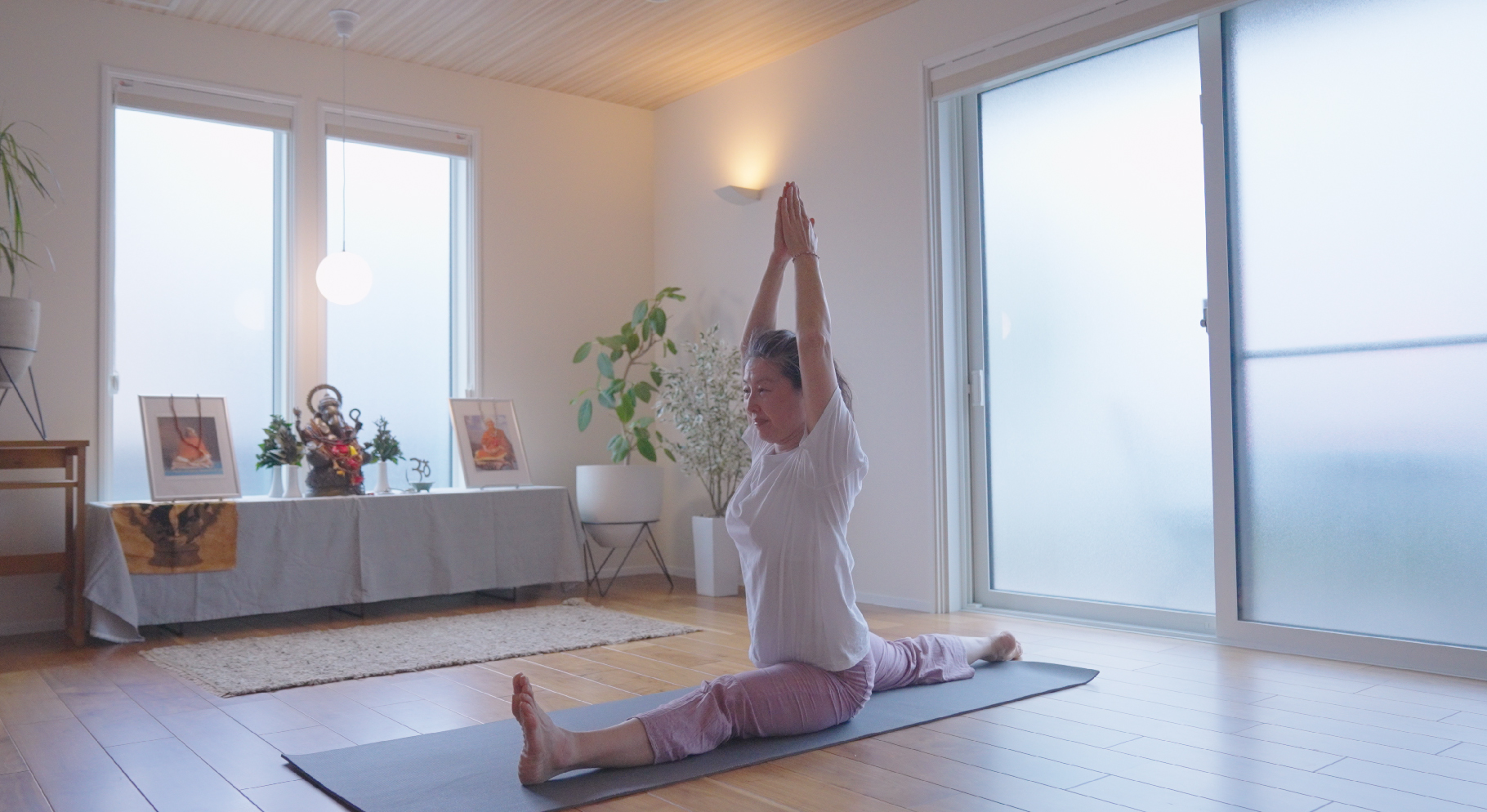 奥様 ヨガはもう随分長く教えています。床に座ることが多いので、床や壁をナチュラルなものにしたい、という希望がありました。うちは無垢のウォールナットを選んだんですけど、レッスンのときに生徒さんがこの床に結構感動してくれます。夏は涼しいし、冬は暖かくて、質感もいいのでとても快適です。